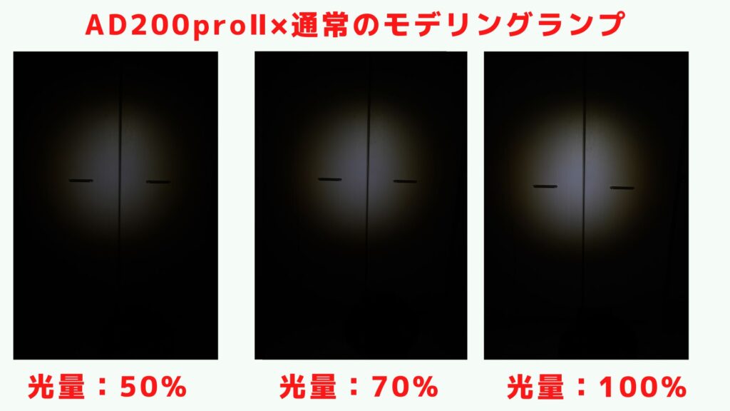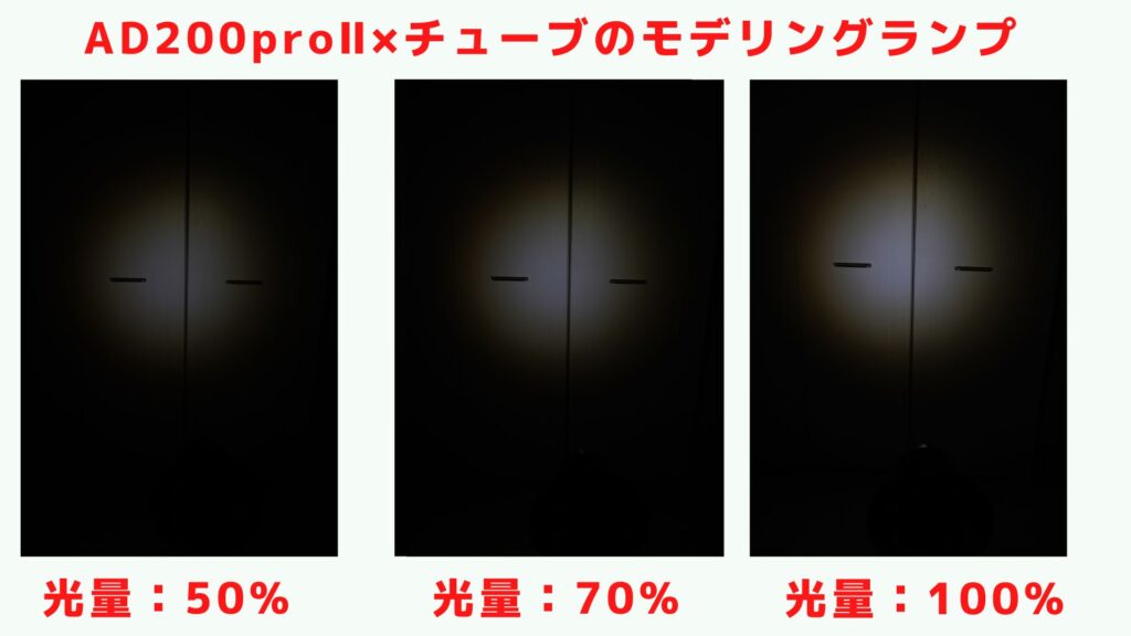 AD200proⅡのモデリングランプでは50%の状態からもう光が目に見えてわかります。