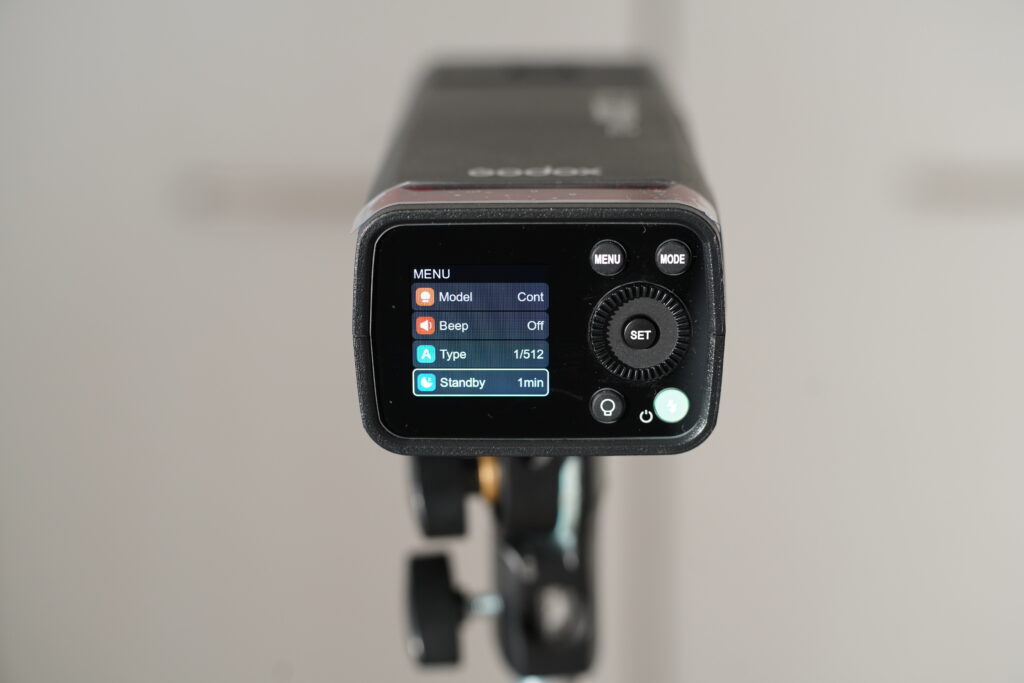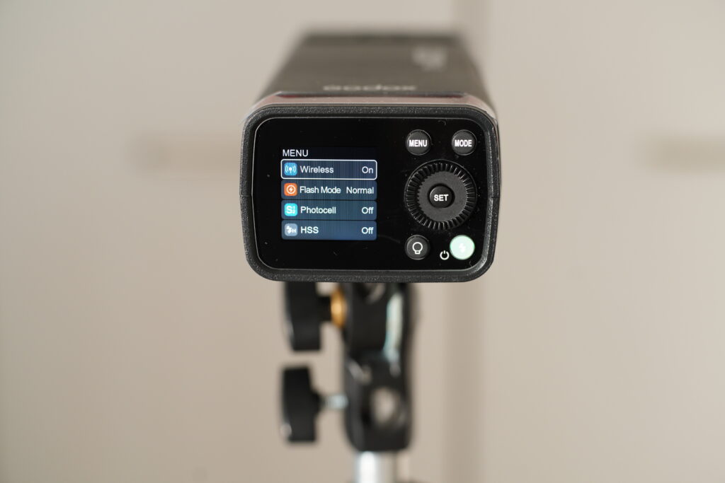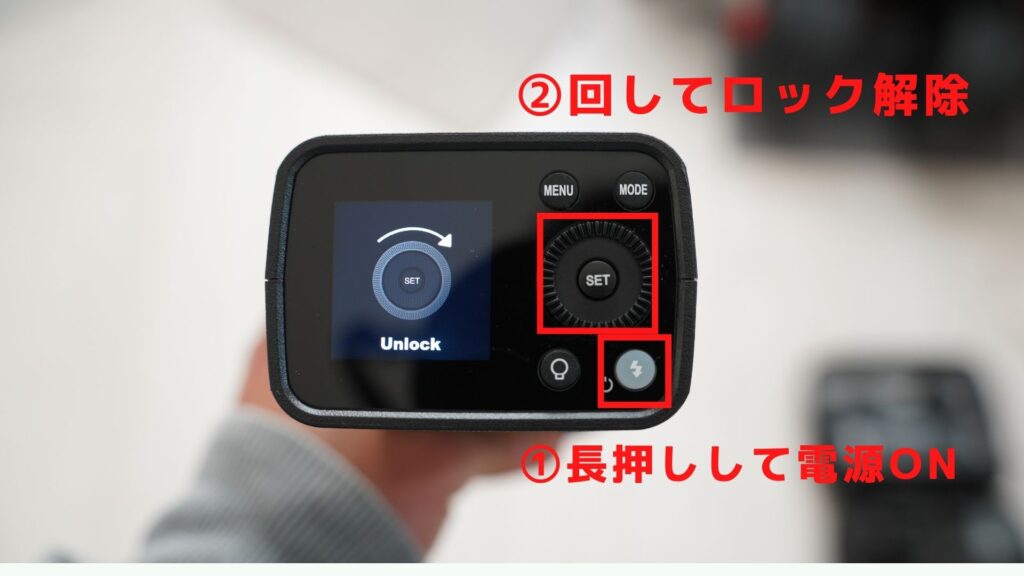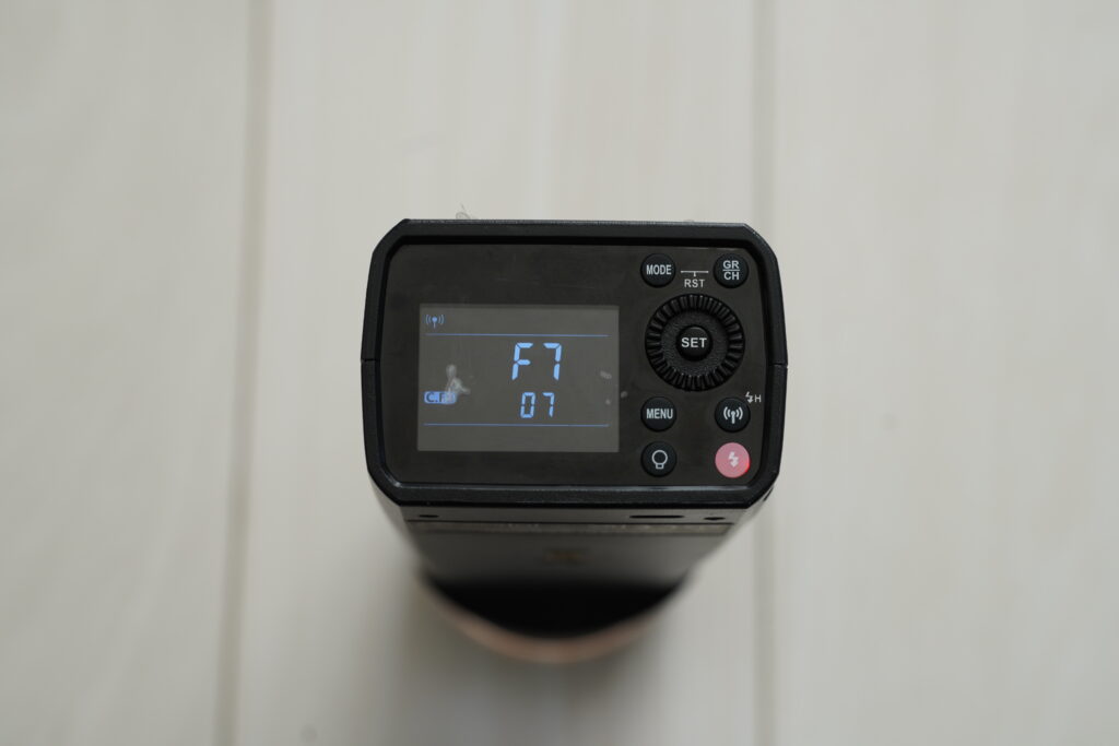AD200proⅡでは、背面の液晶ボタンに電源が振り分けられており、フラッシュボタンを長押しすることで起動されます。